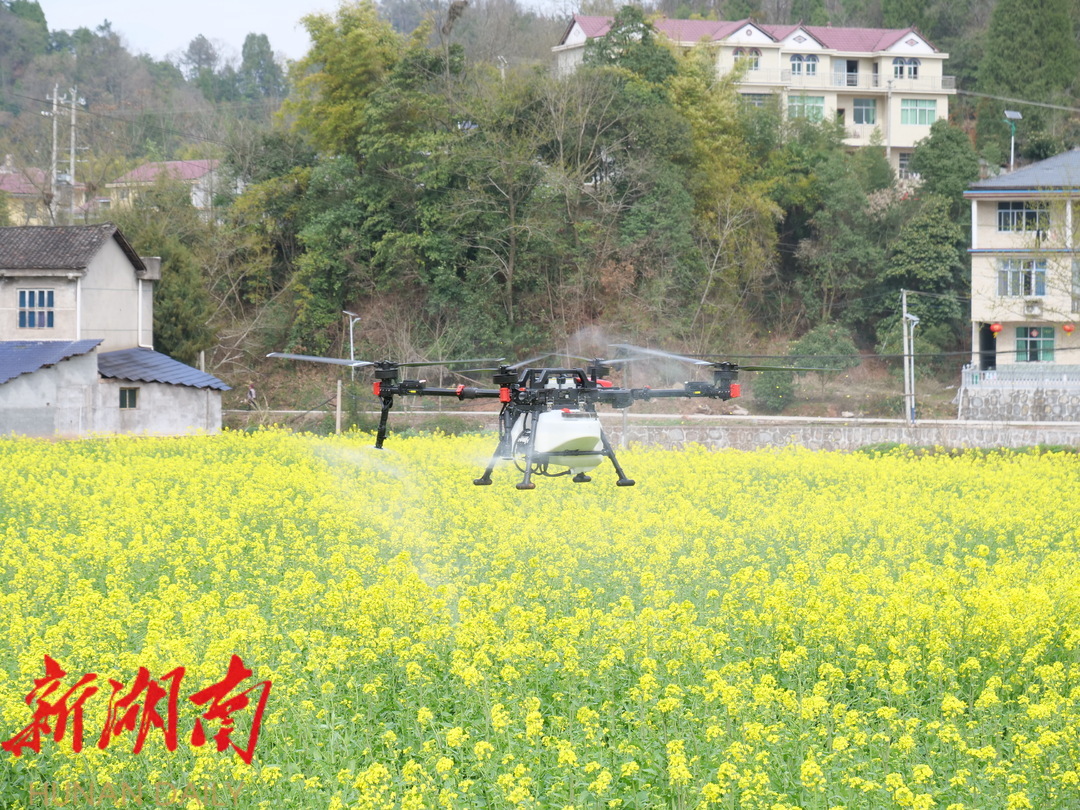 湖南日报·新湖南客户端3月19日讯(记者 熊惠 朱丽娟 通讯员 熊蕊)眼下正值油菜籽产量和品质形成的关键时期,同时也是病虫害高发期。3月18日,在利福塔镇千亩油菜示范片,连片的油菜花竞相绽放,无人机智能设备进行着“飞防”作业,以科技赋能春耕生产,全力保障油菜生长和农户增收。