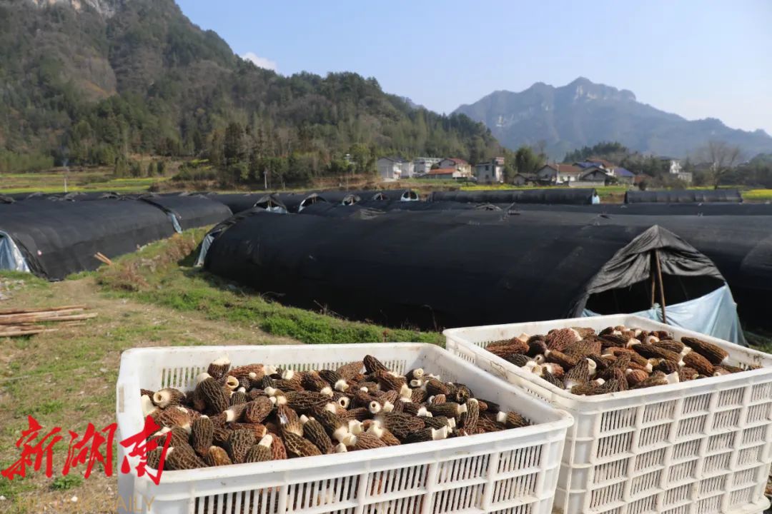 湖南日报·新湖南客户端3月19日讯(通讯员 周汀) 阳春三月,万物复苏。3月17日,在永定区天门山镇小坪村的羊肚菌种植基地里,一朵朵羊肚菌破土而出,撑起棕褐色的“小伞”,在春日暖阳下格外喜人。村民们穿梭在菌棚间,忙着采摘、搬运、分拣,现场一派繁忙景象。近年来,小坪村大力发展羊肚菌产业,小小的羊肚菌不仅为当地经济发展注入强大活力,也为乡村振兴开辟出新路径。