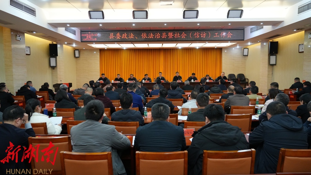 新湖南客户端3月20日讯(通讯员 郑湘)3月19日下午,湘西土家族苗族自治州古丈县召开2025年县委政法、依法治县暨社会(信访)工作会议,深入学习习近平总书记关于政法、依法治县、社会和信访工作的重要讲话和指示批示精神,落实党中央决策部署和省委、州委有关工作要求,总结去年工作,分析当前形势,部署今年工作。县委书记、县委全面依法治县委员会主任滕朝辉出席会议,对依法治县述职人员逐一点评并讲话。县委副书记、县长、县委全面依法治县委员会副主任陈建新主持会议。