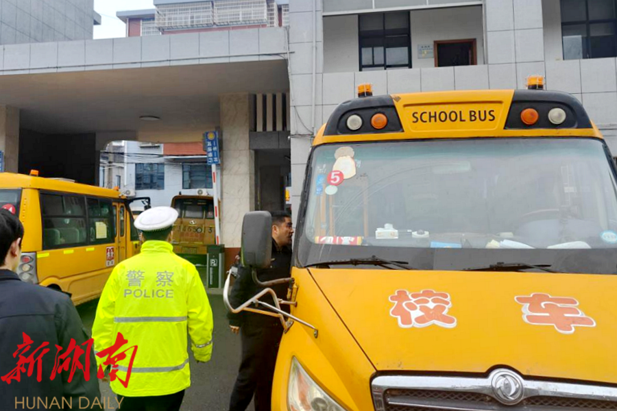 工作人员对校车进行安全检查