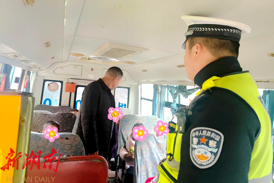 严格督导检查,确保校车安全。 工作人员每一辆校车进行全方位检查,查看车身外观是否有明显刮擦、破损,避免影响行车安全,交警进入车内,细致检查应急按钮是否失灵、安全带是否能正常使用等。