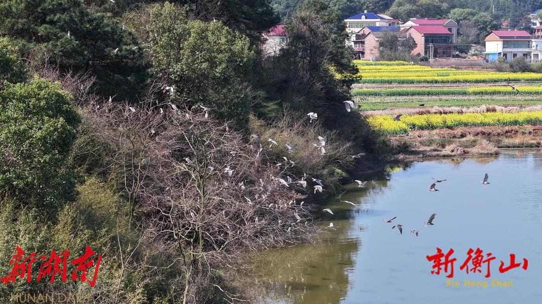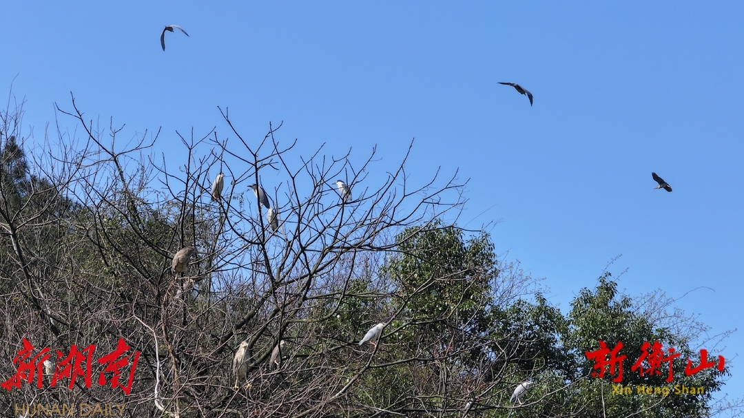 衡山:白鹭夜鹭“混居” 共谱生态和谐赞歌