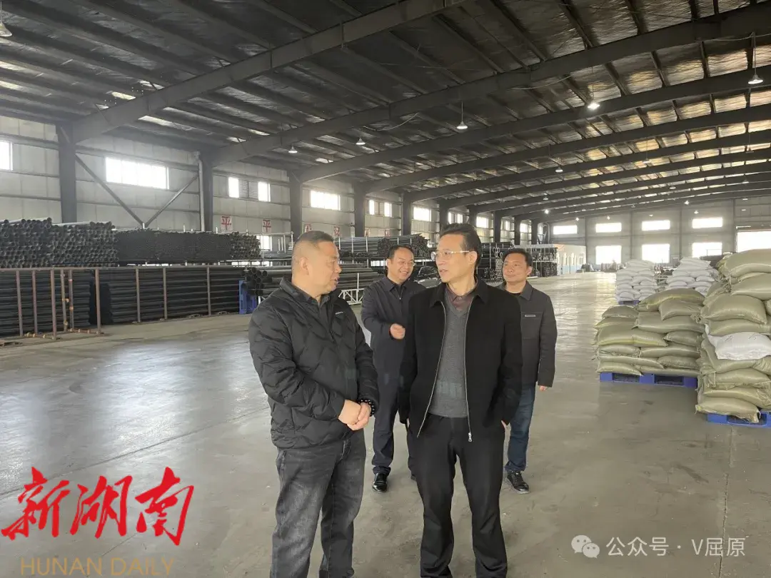 随后调研组来到湖南正通管业有限公司生产车间,企业负责人介绍了目前企业采取“以销定产”模式,效益稳定,同时感谢区水利、农业等职能部门对企业的帮助。田明清强调,联点部门要继续做好政策配套服务,推动形成“政企联动、互利共赢”的良好局面。 在福华环保建材有限公司调研时,田明清针对企业提出的问题建议道,希望联点部门多对接金融机构,用好用活信贷政策,同时鼓励企业把握国家新型建材产业发展机遇,积极从政策增量上找机会。