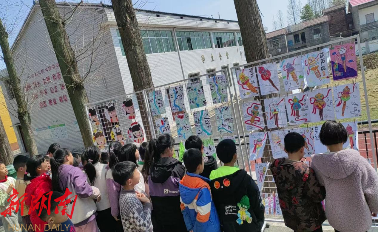 湖南日报·新湖南客户端3月20日讯 (通讯员 邹四元 周贝)“这幅画是我画的……”在湘阴县赛头学校校园画展前,秦子睿同学兴奋地向同学们介绍。