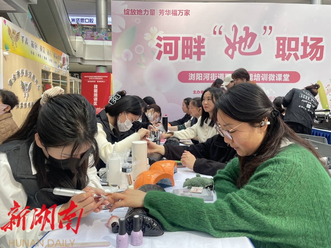 活动现场设置三大就业服务专区,“政策护航”专区发放就业创业、社保、劳动保障宣传手册200余份,由业务骨干向居民解读社保补贴、技能培训等惠民政策,现场解答咨询80余人次;“精准领航”职业指导区由专业职业规划师提供职业规划、简历优化、面试模拟等一对一服务;河畔“她”职场技能培训区特邀辖区内长沙市玲丽职业技能培训学校,针对女性就业创业群体开设“你本来就很美”职业技能培训微体验“快闪”课,为80余名求职者带来美容技能培训、职场形象设计课堂。