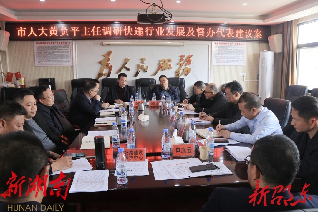 新邵东客户端3月20日讯(记者 邱文丽) 3月20日,邵东市人大常委会党组书记、主任黄负平调研全市快递行业发展情况,并就市交通运输局承办的代表建议案进行督办。邵东市人大常委会副主任申荣参加调研。