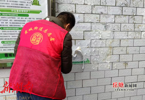 岳塘融媒 3月19日讯 (通讯员:阳花)为进一步改善社区环境卫生面貌,提升居民生活质量,近日,岳塘区霞城街道牡丹社区联合湘潭市信访局深入辖区内居民小区开展“牛皮癣”集中整治活动。