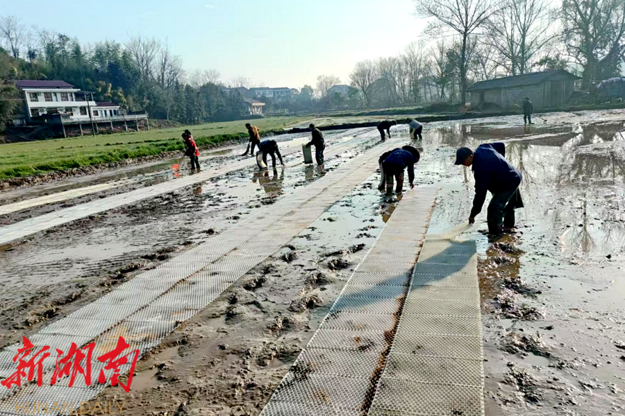 视外桃源客户端3月20日讯(通讯员: 文静 ) 春分时节,在泥窝贡米核心产区的 桃源县易禾生态农业专业合作社 千亩稻田里,23名村民正娴熟地整田备耕。这个被认证为“就业帮扶车间” 的现代农业基地里,有 6 名曾经的建档立卡贫困户,正通过“家门口就业” 实现稳定增收。