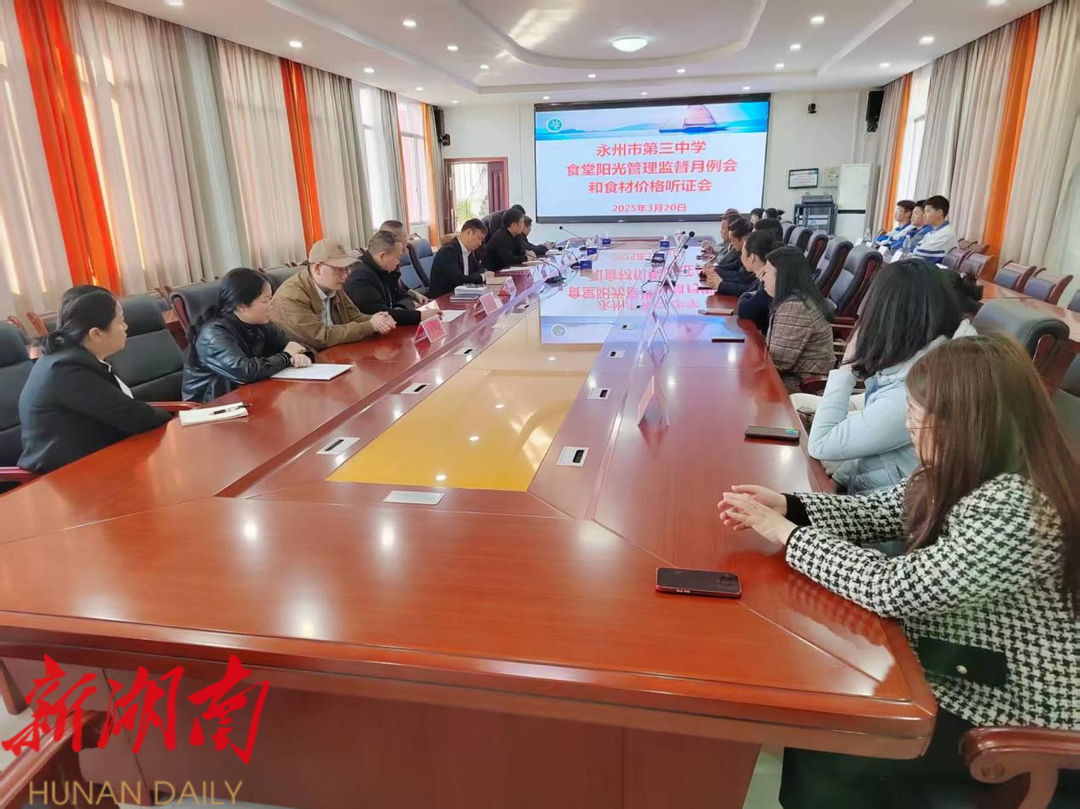 湖南日报·新湖南客户端3月21日讯(通讯员 刘永中 黄艳辉)3月20日,永州市第三中学组织召开阳光食堂管理监督月例会暨食材价格听证会,多方代表共同探讨校园食堂管理、食品安全及食材价格等议题,共谋校园膳食服务提升新路径,共筑校园食品安全新防线。