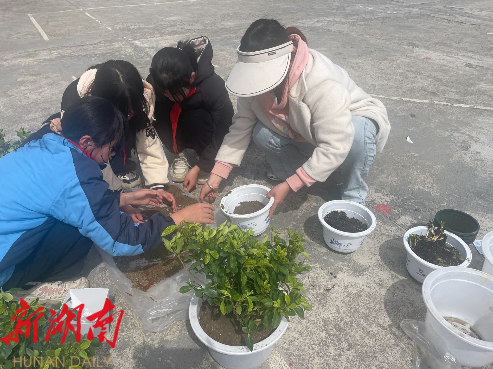 上午11时,操场中央的“种植加油站”已堆满营养土、花苗和工具。各班级按课间操队形集结,学生们头戴自制“护花使者”草帽,手持班级专属种植牌,俨然一支支跃跃欲试的“春耕小队”。