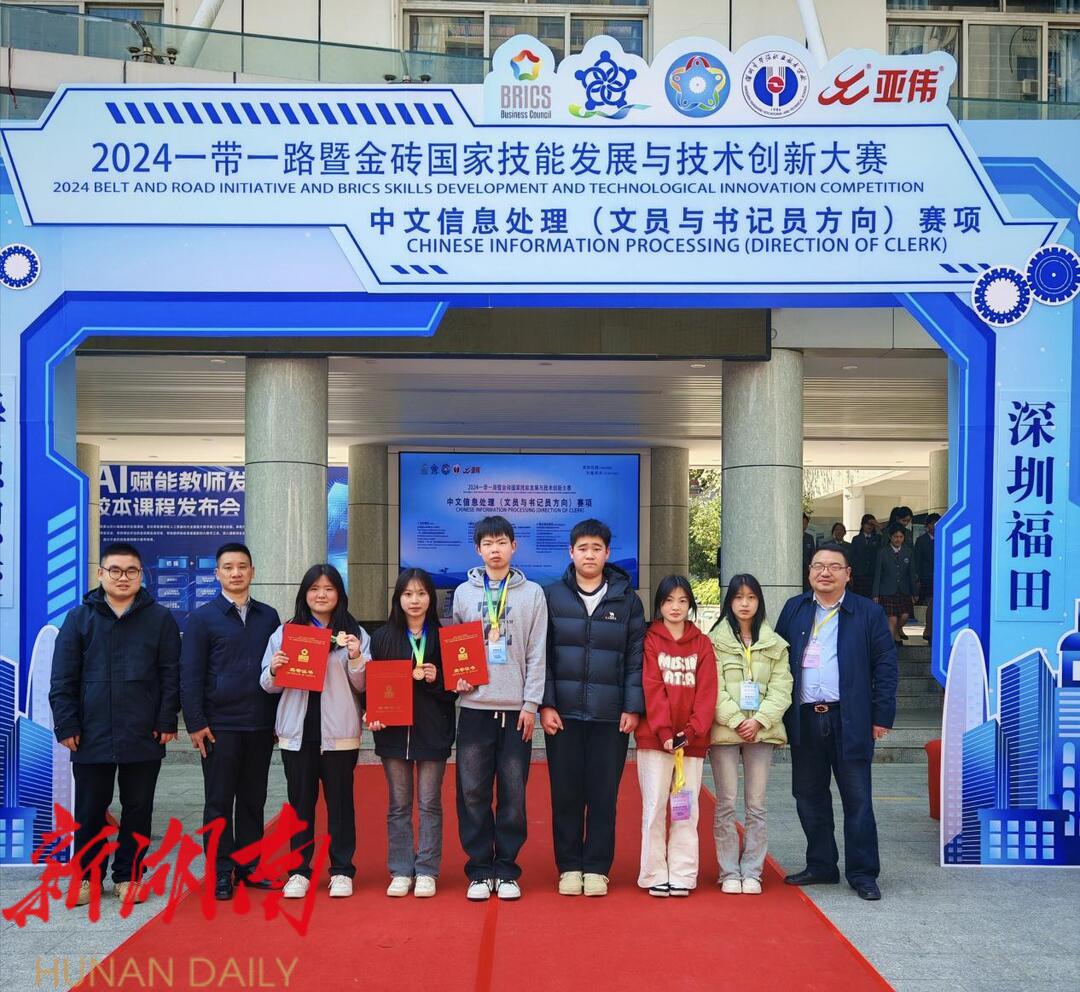 洞口融媒3月22日讯(通讯员:袁明媚) 为搭建技能发展和技术创新人才国际合作平台,加快技能人才培养,2024-2025一带一路暨金砖国家技能发展与技术创新大赛——中文信息处理(文员与书记员方向)赛项决赛于2025年3月17日至21日在深圳华强职业技术学校举行。洞口县职业中专学校329班杨珊、356班刘晶、333班尹芳婷三位学生,参加《中文信息处理——文员与书记员方向》赛项脱颖而出,喜获国家级三等奖。