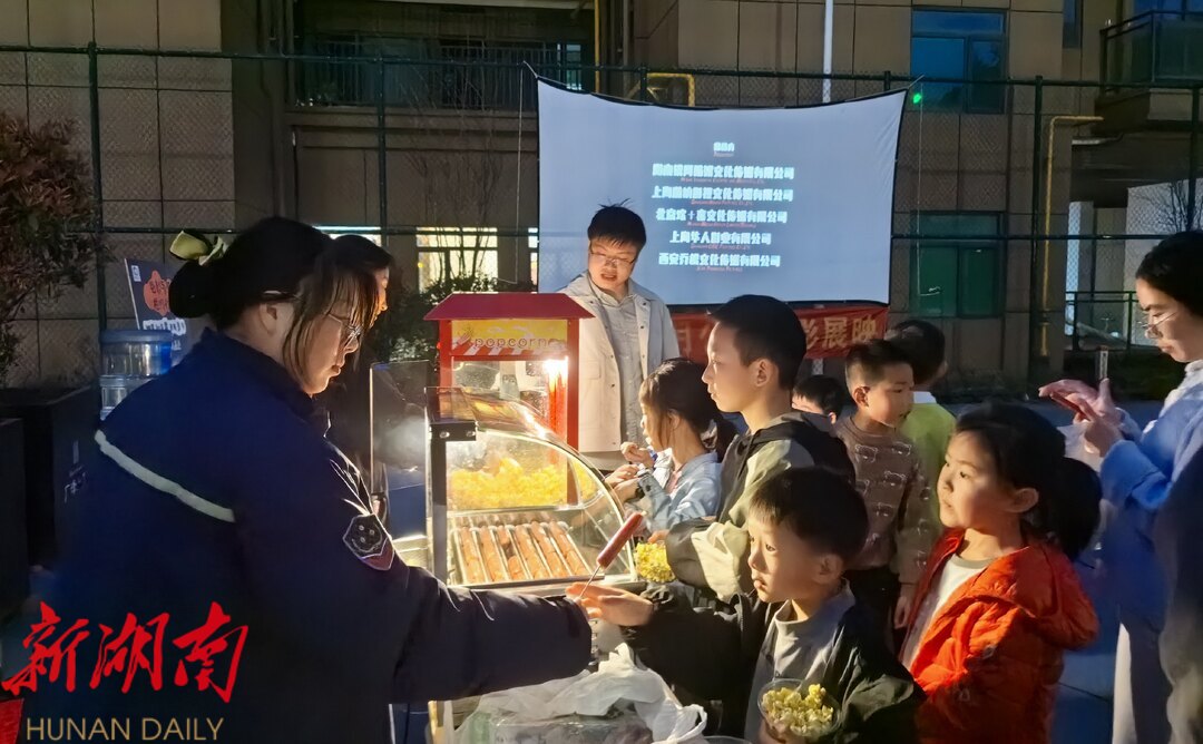 湖南日报·新湖南客户端3月23日讯(通讯员 肖贵芬)22日晚,开福区秀峰街道湘民社区联合长沙市电影发行放映中心开福放映队、长沙市万科物业服务有限公司等爱心单位、企业,举行“‘益’起看电影,共享好时光”露天电影节活动,让小区业主在家门口共享光影“文化大餐”。