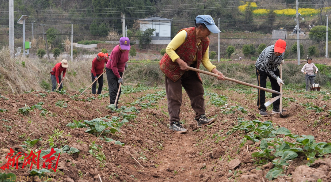 湖南日报·新湖南客户端3月23日讯(通讯员 郭军)3月22日,在芙蓉桥白族乡梅家桥村的“三分地养活一个人”粮食高产绿色优质科技创新工程示范基地内,工作人员正热火朝天地进行土豆起垄、施肥和除草作业。今年,这片示范基地的种植面积达300亩,种有兴佳二号、刘平一号、大西洋等10余种土豆,采用半机械化耕种技术,目标直指亩产4000公斤,预计较去年产量翻倍。