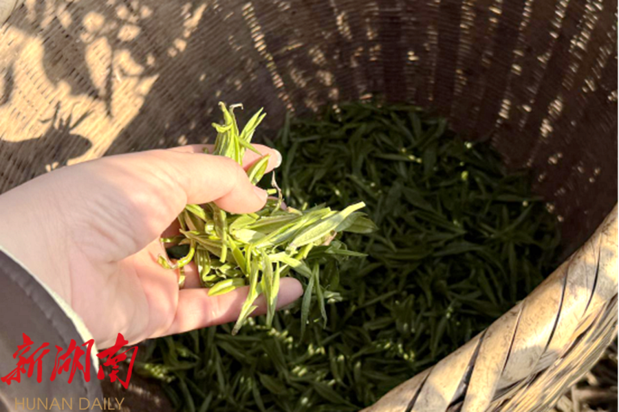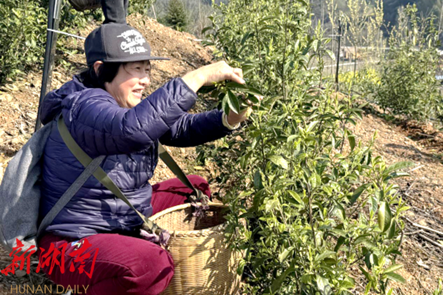 “在屋门口采茶,一天可以挣到百来块,零用钱有了,还不耽误照顾屋里。”茶垄间,挎着竹篓采撷新芽的村民吴大姐,数着篓中青翠,笑纹舒展。茶园的建立,让村里像她这样的留守村民都能实现家门口就业。说话间,吴大姐指尖也没闲着,颗颗茶青飞快落入手心,握满放入茶兜后,又继续采摘。