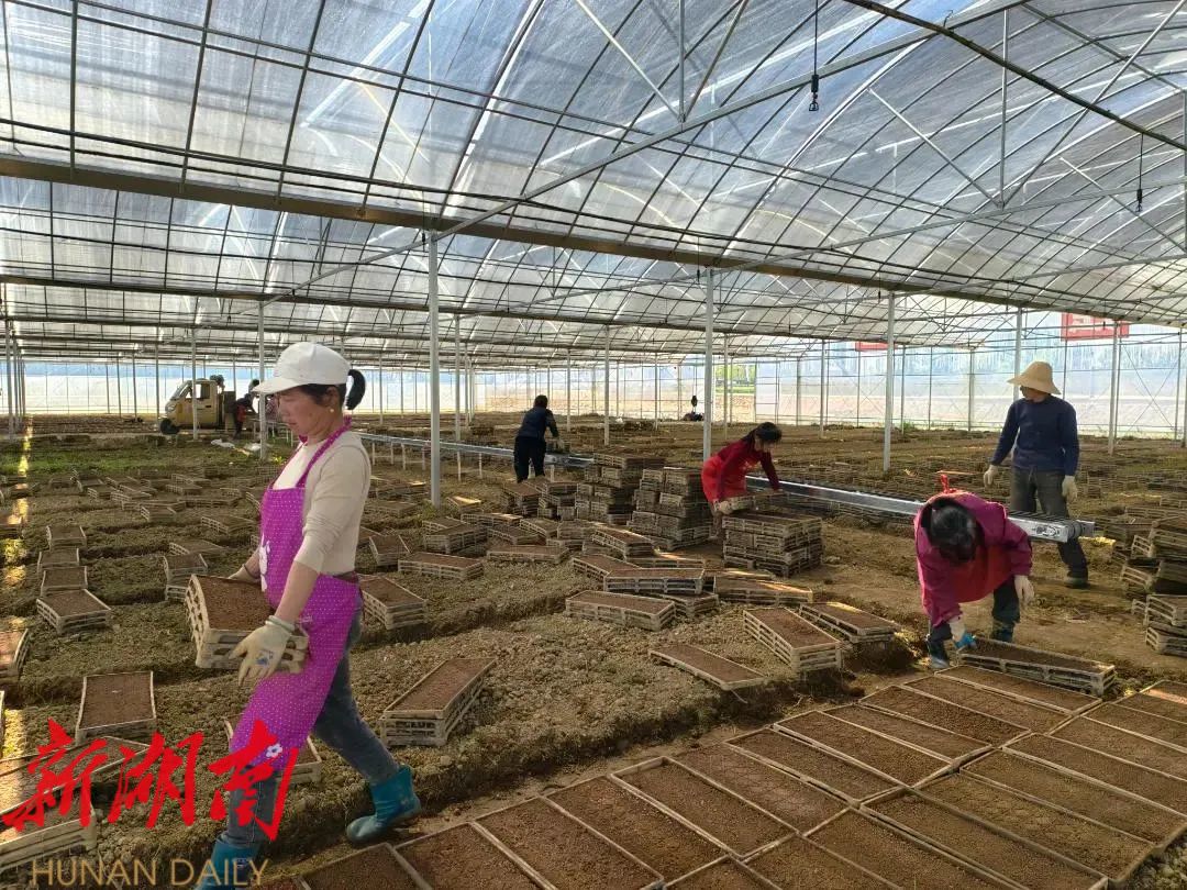 近两年,在上级部门的支持下,梅仙镇整合资源,筹资500余万元建设现代化智能农业大棚3.4万平方米,运用科技手段开启“早稻育秧+特色农产品种植”全年轮耕轮种的模式,让“车间造秧苗”的新模式跑出加速度。育秧工厂里,2条全自动流水线高效运行。工作人员只需按下操作按钮,从摆盘撒土到浇水播种,再通过传送带运输盖土出盘,整个育秧过程全部自动化完成。“每台机器运转10小时可生产1.6万盘秧苗,按往常人力计算抵得上20个熟练工。”操作现场,负责人用一组简单明晰的数据体现出全自动化的效率。