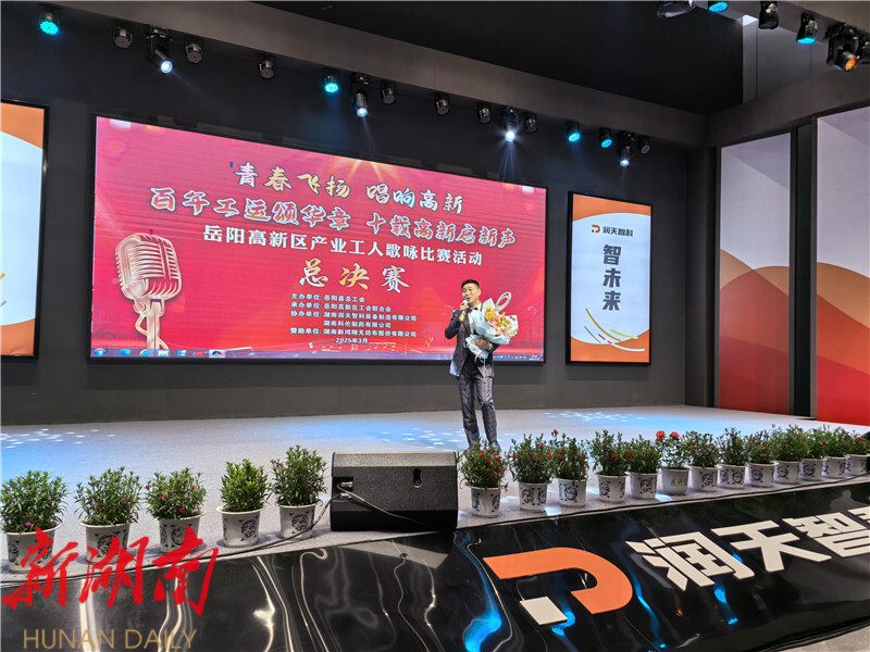 湖南日报·新湖南客户端3月24日讯(通讯员 张帆) 3月22日晚,岳阳高新区产业工人歌咏比赛总决赛在润天智科公司多功能厅举行,来自园区的20位产业工人过五关斩六将,登上总决赛舞台,他们以歌为媒,以声传情,生动展现了新时代产业工人的精神风貌与艺术素养。