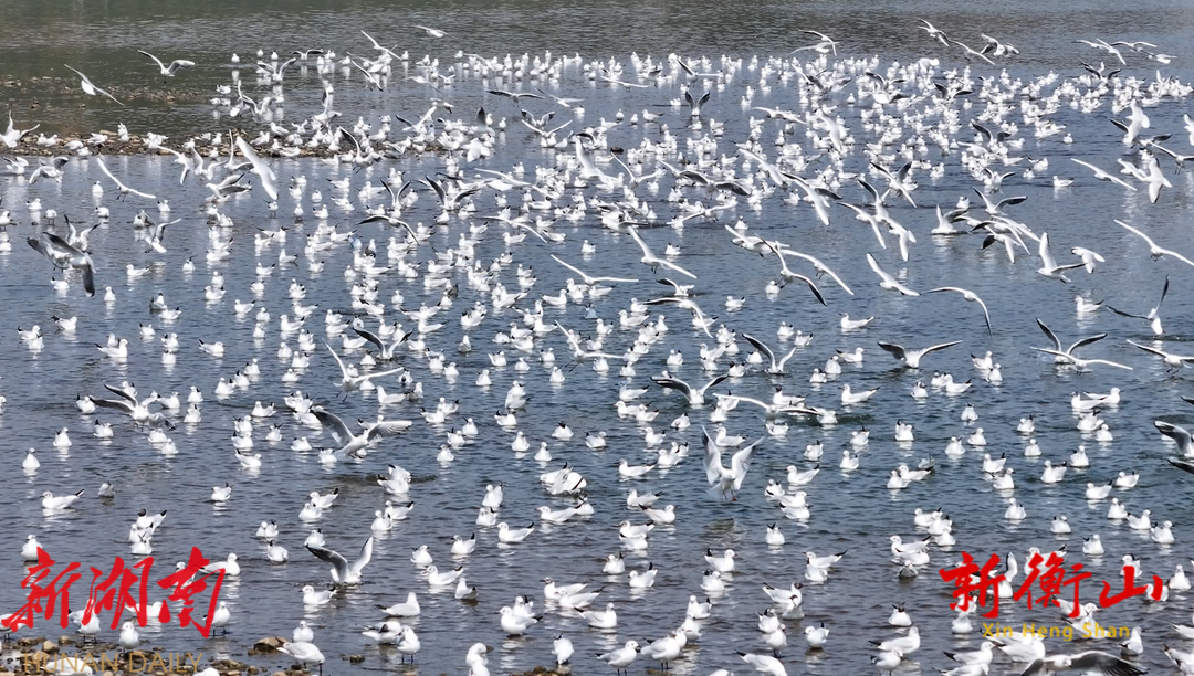 红嘴鸥,俗称“水鸽子”,在我国主要为冬候鸟,部分为夏候鸟。春季迁到东北繁殖地的时间为3-4月。秋季于9-10月离开繁殖地往南迁徙。从2016年起,连续十年,在每年的3月中下旬,北归的红嘴鸥都会如约而至,在衡山萱洲国家湿地公园停留休整几天,待补充体力后,再飞往繁殖地。
