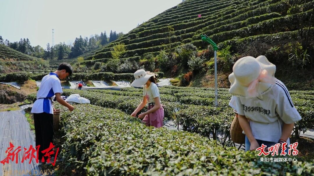 在茶园一侧,几位学生也加入了采茶队伍,体验采摘春茶的过程。他们一边认真学习采摘技巧,一边体验田间劳动,感受传统茶文化的魅力。“今天是周末,和同学们一起来体验采茶,学习了不少采茶知识,也感受到劳动的不易。”学生蒋欣怡说。