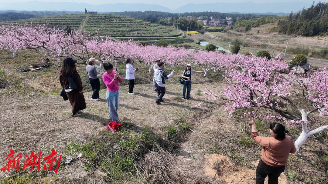 3月24日,记者 走进茶铺桔院的桃园,看到一簇簇桃花挂满枝头, 粉的娇嫩 、红的似霞。 花瓣层层叠叠,在阳光的照耀下更显娇艳, 与周围的绿水青山相映成趣,构成了一幅美丽的乡村画卷。 桃树下不时有游客驻足拍照,记录美好的春日图景。