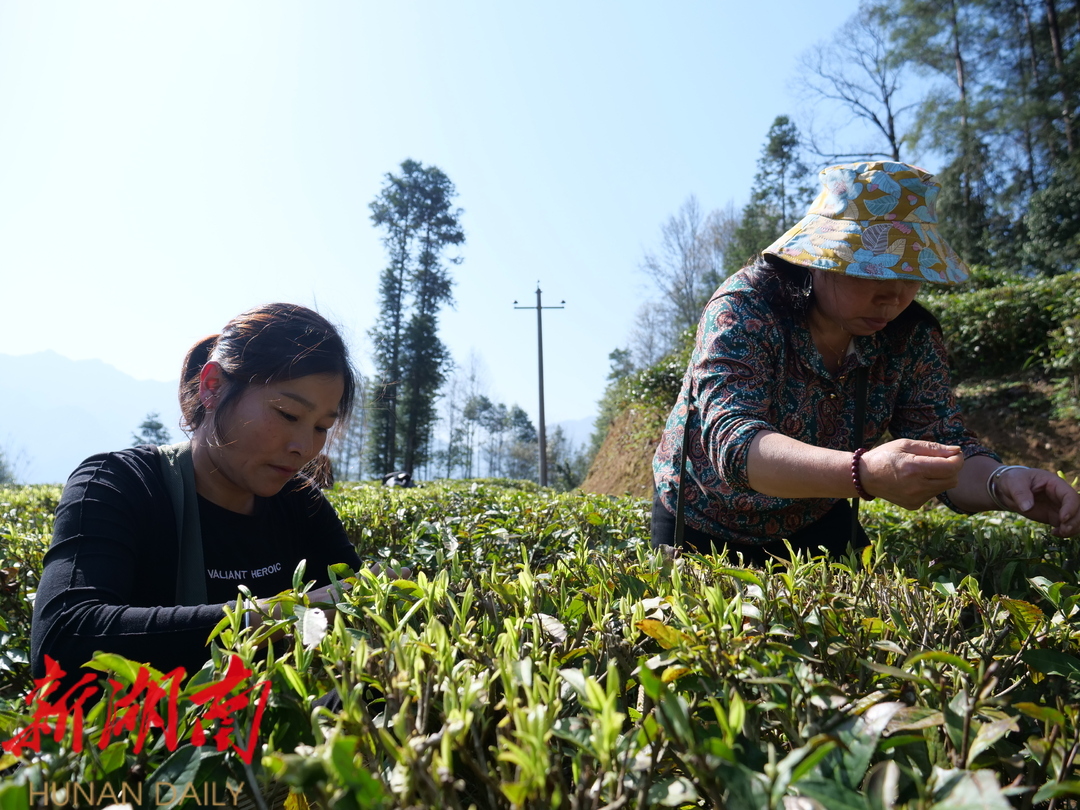 湖南日报·新湖南客户端 3月24日讯(通讯员: 朱丽娟 郭军)满园春芽吐新绿,又到春茶飘香时。3月24日,龙潭坪镇溪口村的茶园里,春茶嫩芽勃发,迎来了采摘旺季,茶农们趁着大好春光采摘今年的首轮春茶。