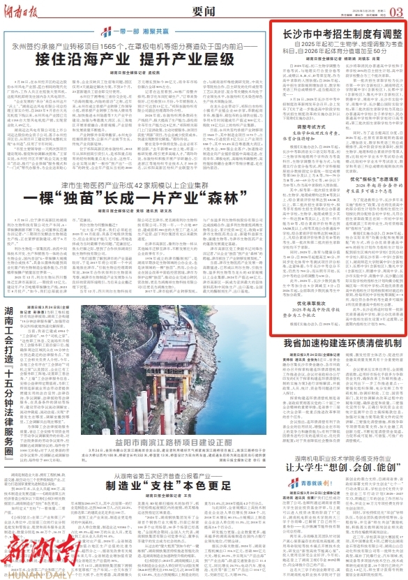 3月24日,2025年长沙市中考中招制度改革新闻发布会召开,会上发布了《关于进一步推进高中阶段学校考试招生制度改革的实施办法》(以下简称《实施办法》)。