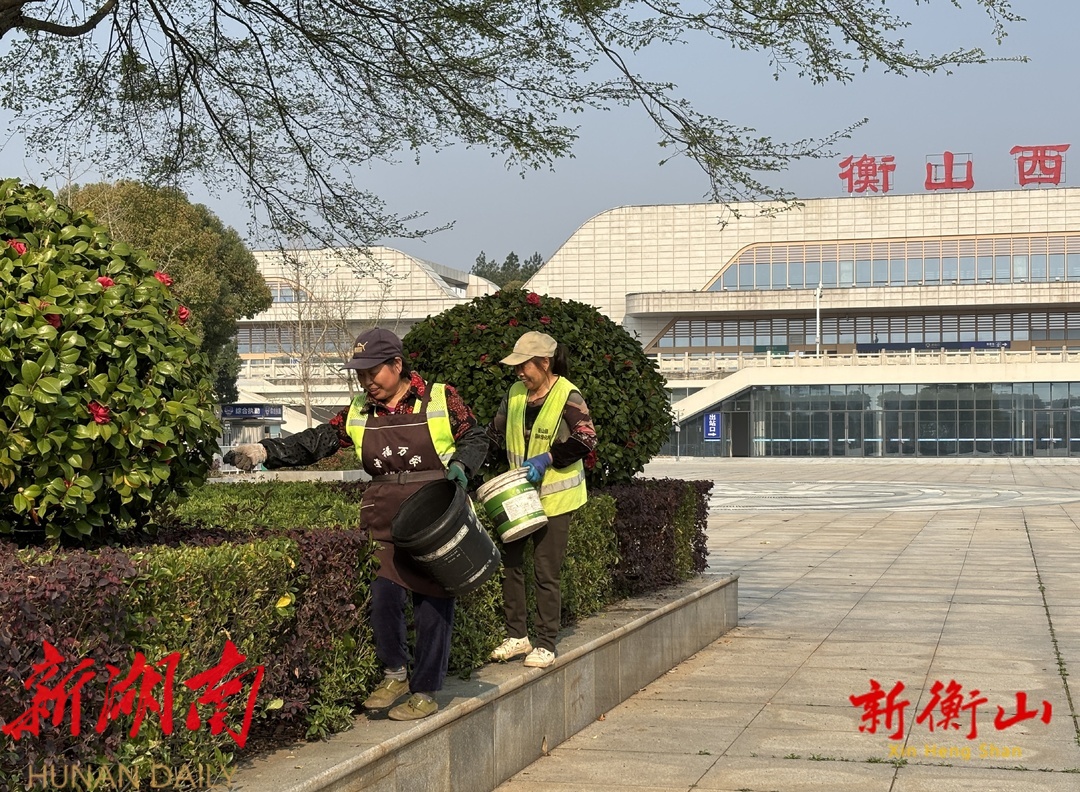 3月25日上午,记者在衡山西站广场看到,技术人员正在对植物撒施专用肥料。为确保施肥效果,园林绿化所根据植物的生长需求和土壤条件,合理选用复合肥,采用人工撒播、打孔施肥等多种方式,确保肥料均匀渗入土壤。肥料经浇水或雨水冲刷,将充分融入泥土,提高土壤肥力,满足绿化植物生长需要。