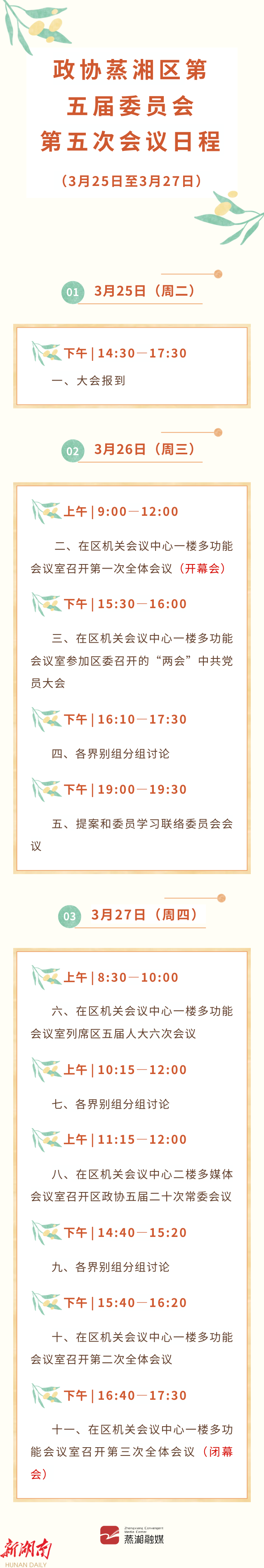 两会预告 | 政协蒸湘区第五届委员会第五次会议日程
