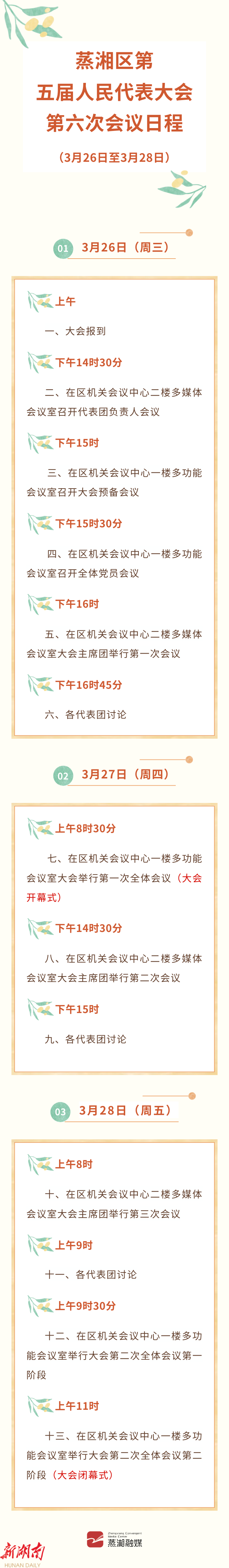 两会预告 | 蒸湘区第五届人民代表大会第六次会议日程