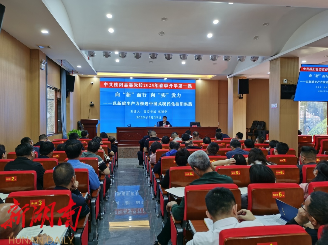 新桂阳3月25日讯(记者 邓超玮)今天上午,县委书记巫初华到县委党校主讲2025年春季“开学第一课”。他围绕“向‘新’而行,向‘实’发力,以新质生产力推进中国式现代化桂阳实践”这一主题,结合到江浙考察学习时的所见所闻所思所想和桂阳实际,聚焦现代化产业体系建设,与中青班、科干班全体学员深入交流,共同探讨桂阳高质量发展的新路径。