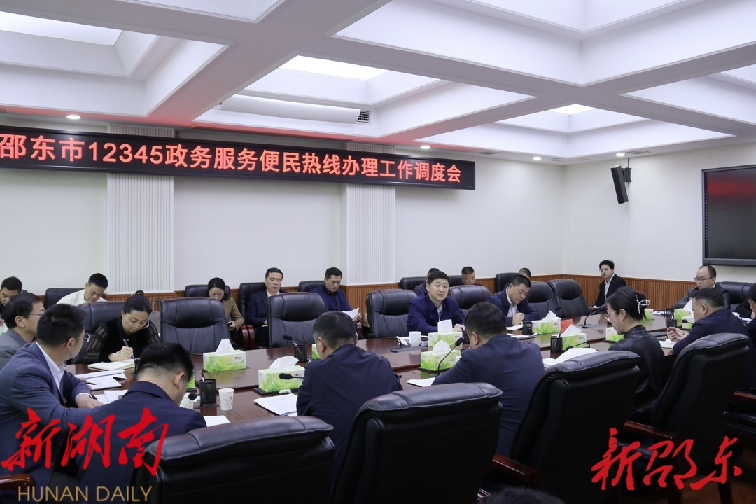 新邵东客户端3月25日讯 (记者 刘意忠) 3月25日,邵东市召开12345政务服务便民热线办理工作调度会,进一步统一思想、明确任务、压实责任,推动热线办理工作再上新台阶。市委副书记、市长付凯军出席并讲话,市委常委、政法委书记刘山鸣主持会议。