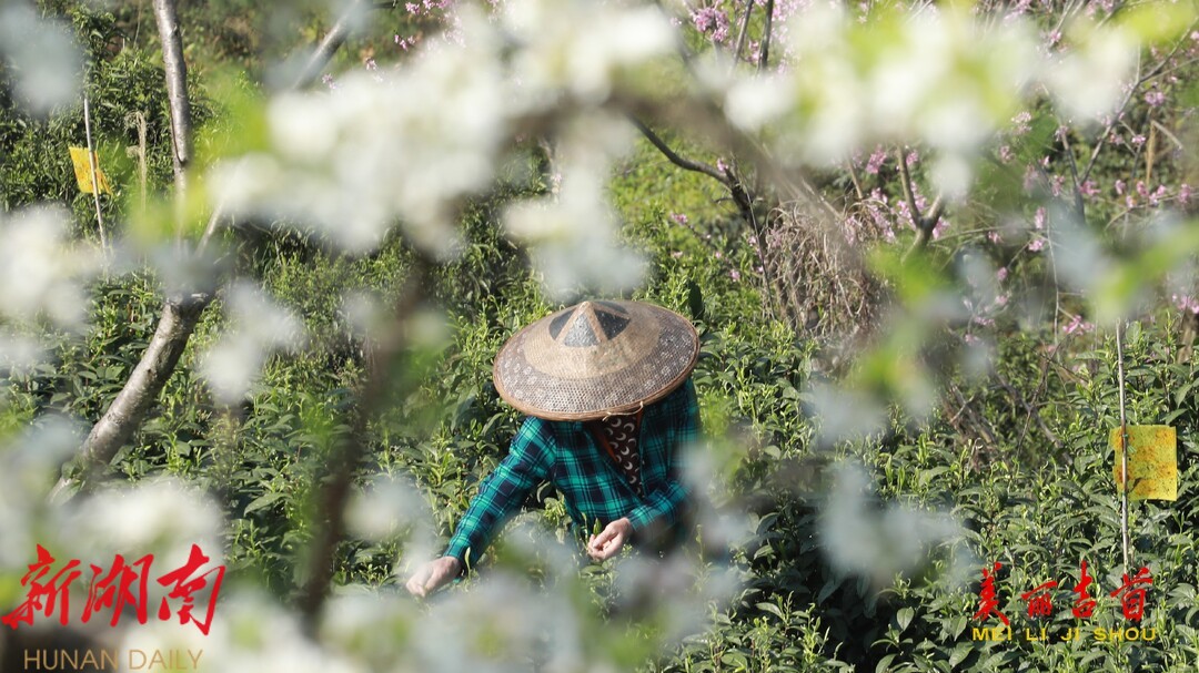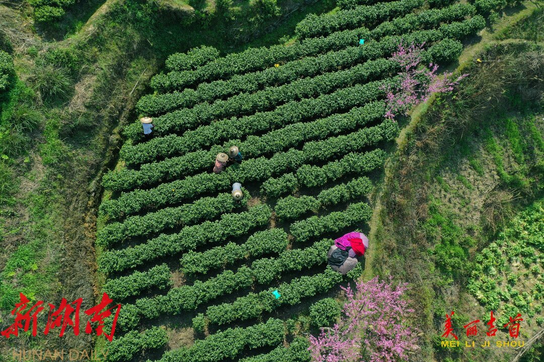 吉首市融媒体中心3月25日讯(记者 刘丹)春分过后,随着气温回升,吉首市各大茶园迎来明前茶采摘黄金期。3月25日,天刚破晓,夯坨村茶园已热闹起来。茶山层叠,新芽吐翠,茶农们忙碌的身影与粉蕊的桃树、雪白的李花交相辉映,勾勒出一幅如诗如画的春日田园图景。