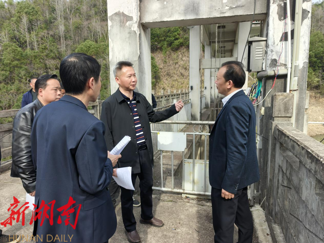 鲁勇先后来到尧塘水库、姚太水库、杨槐水库和汨罗江三市段,实地查看水库水位、设施设备运行、物资储备、应急队伍建设及水利项目建设情况。