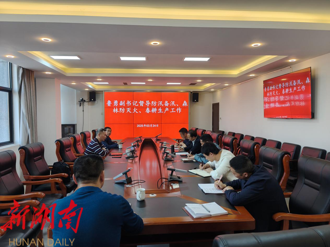 平江融媒3月26日讯(作者 廖超群)3月24日下午,县委副书记、统战部长鲁勇带队到三市镇调研督导防汛备汛、春耕备耕和森林防火等重点工作,县委办、县水利局、县润恒自来水有限公司等单位相关负责同志参加。