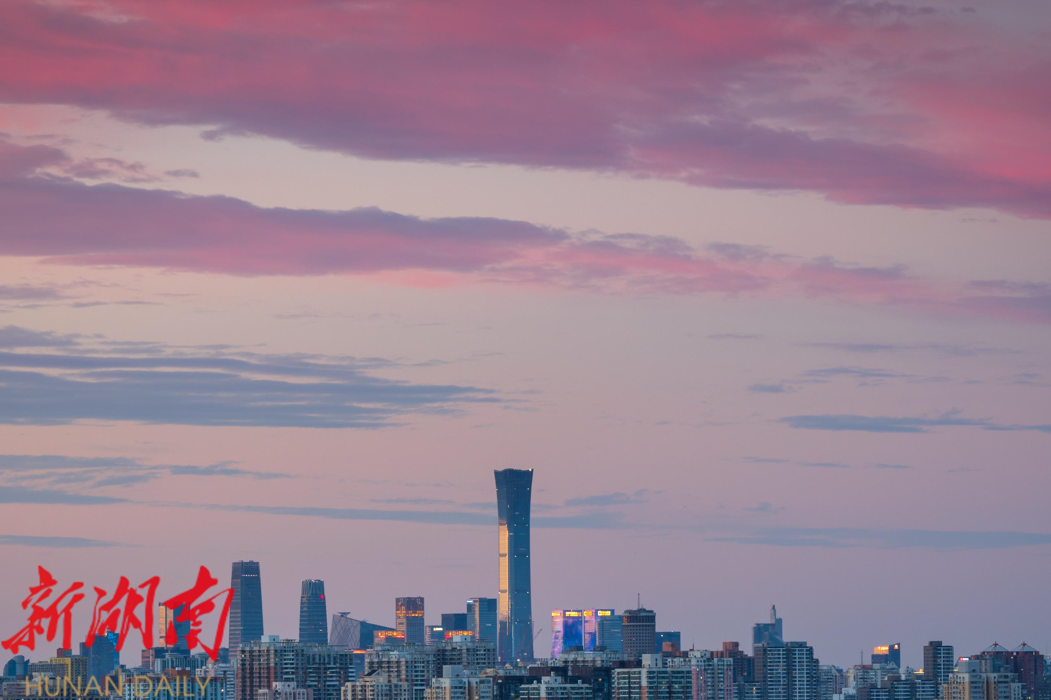 △北京国贸CBD商务区的晚霞。