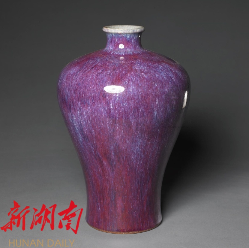 △清乾隆·窑变釉梅瓶,故宫博物院藏。窑变釉,清雍正时期仿宋代钧窑釉色衍生出来的新品种。