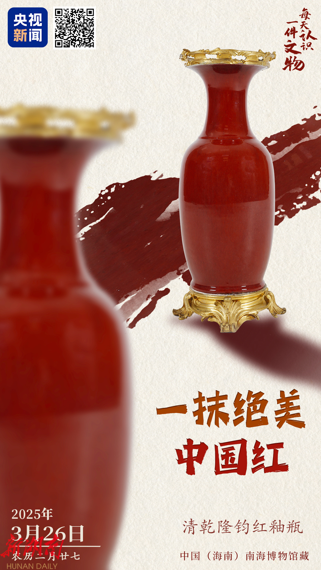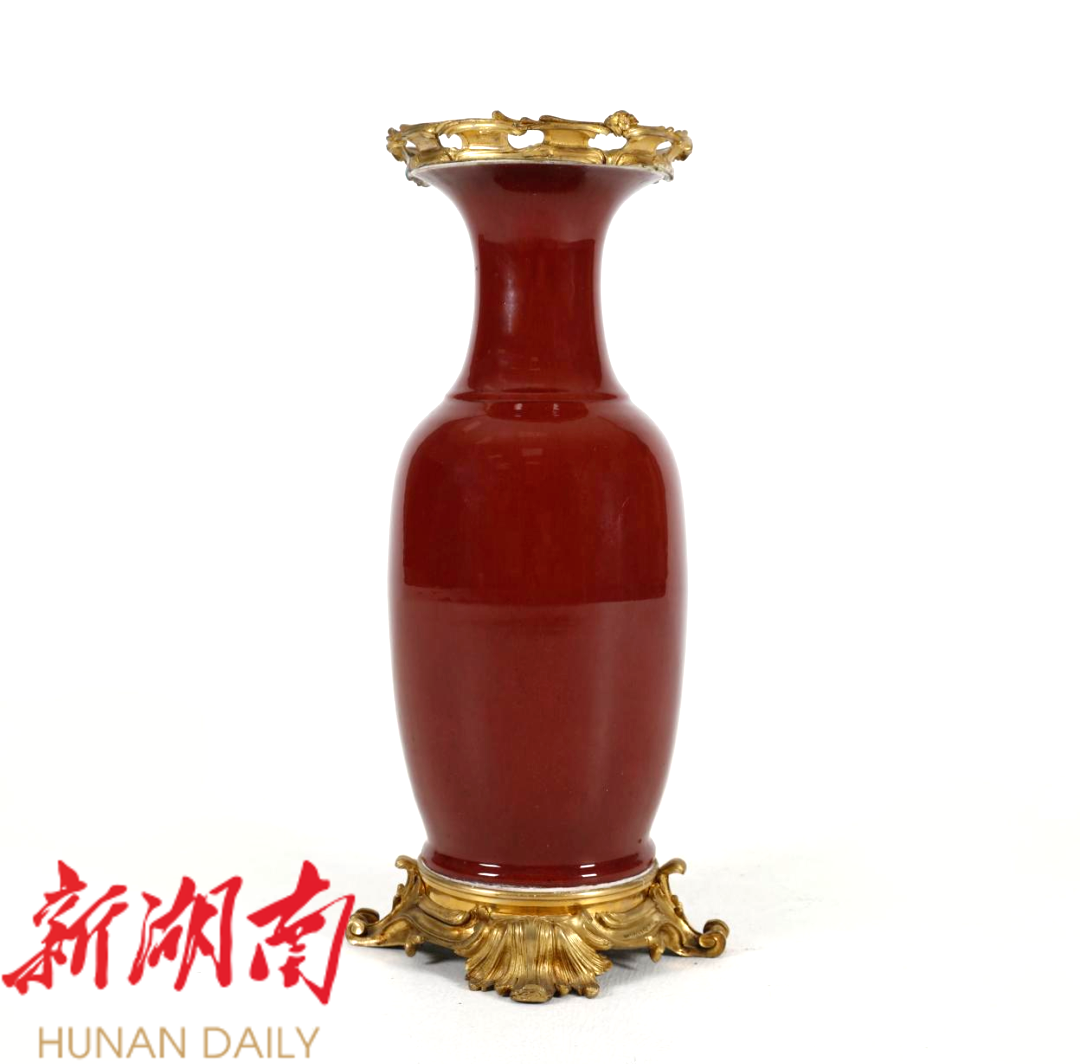 △清·乾隆款霁红瓷瓶,开封市博物馆藏。(文博日历丨冬日暖色来了!它,“瓶”实力走红)
