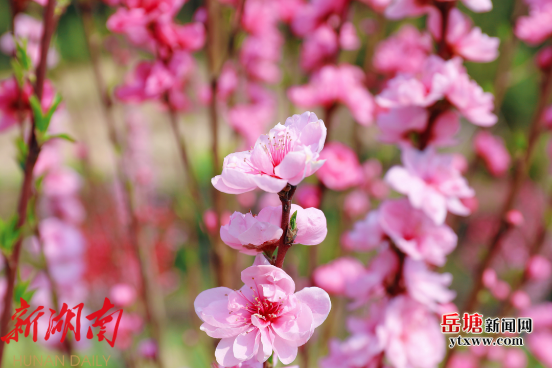 岳塘融媒3月2 6 日讯 (通讯员:唐思雯)三月春光正当时,桃花盛放满园香。近日,位于岳塘区昭山镇七星村的湘潭七星桃花源里的桃花竞相开放,满天红、红雨垂枝、红色舞姬等桃花在枝头争奇斗艳,将七星村装点得如梦似幻,如一幅流动的春日画卷,吸引了长株潭的游客纷纷来追寻春天的足迹。