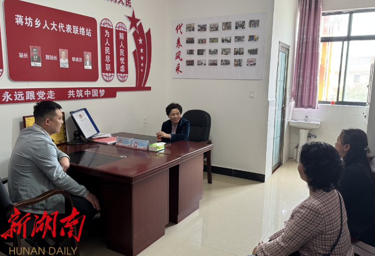 图为罗玉梅(左二)在蒋坊乡人大代表联络站调研