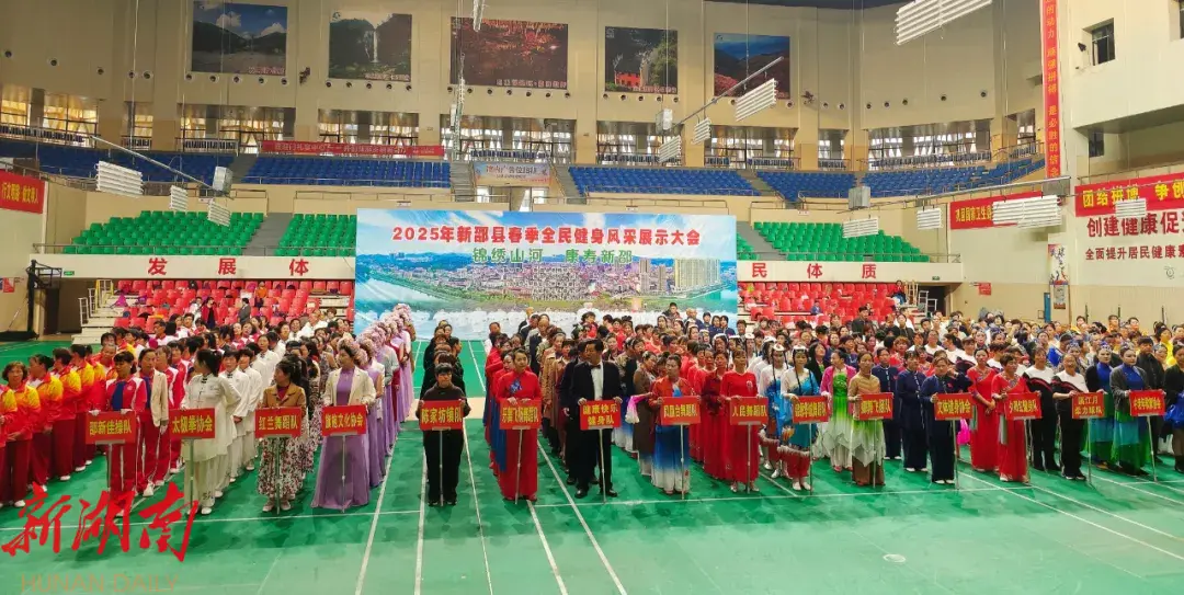 新新邵客户端3月26日讯(记者 石银子 王琳璐) 3月26日,新邵县“锦绣山河・康寿新邵”全民健身风采展示大会在新邵体育馆举行。活动旨在全面落实“全民健身计划纲要”,增强我县全民健身意识、提高身体素质,促进全民健身活动健康发展,充分展示出我县中老年人健康向上的精神风貌。