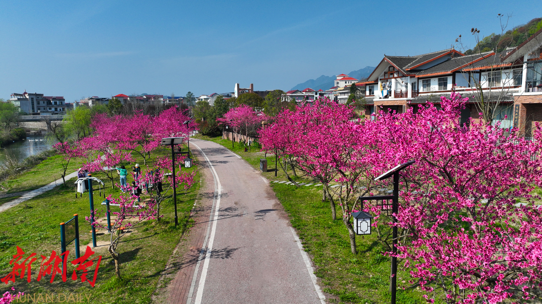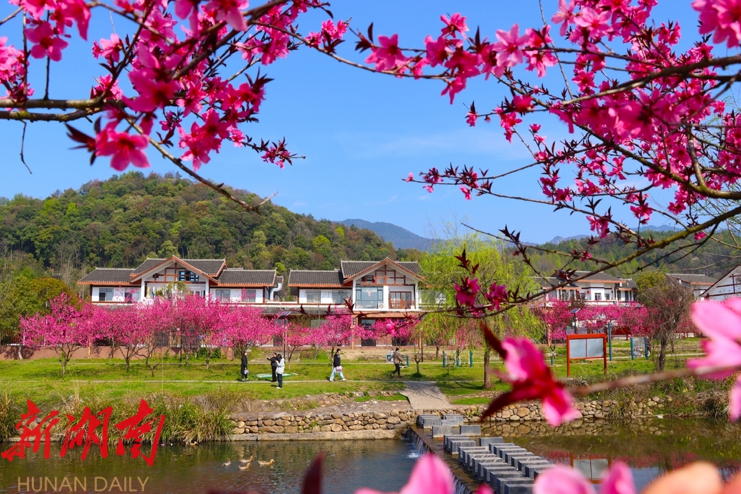 3月25日,在棠溪河两岸的桃花基地,一朵朵一簇簇或淡粉、或绯红的桃花娇艳盛开,如云似霞,满目明媚,呈现出一派生机勃勃的春日生态美景。河岸绿柳依依,河中溪水潺潺,让地处青山峡谷中的白水洞村宛如一片世外桃源,如诗如画、岁月静好。慕名而来的游客三五成群,在绚烂的桃花林中穿行游玩,赏花闻香,与桃花亲密合影。