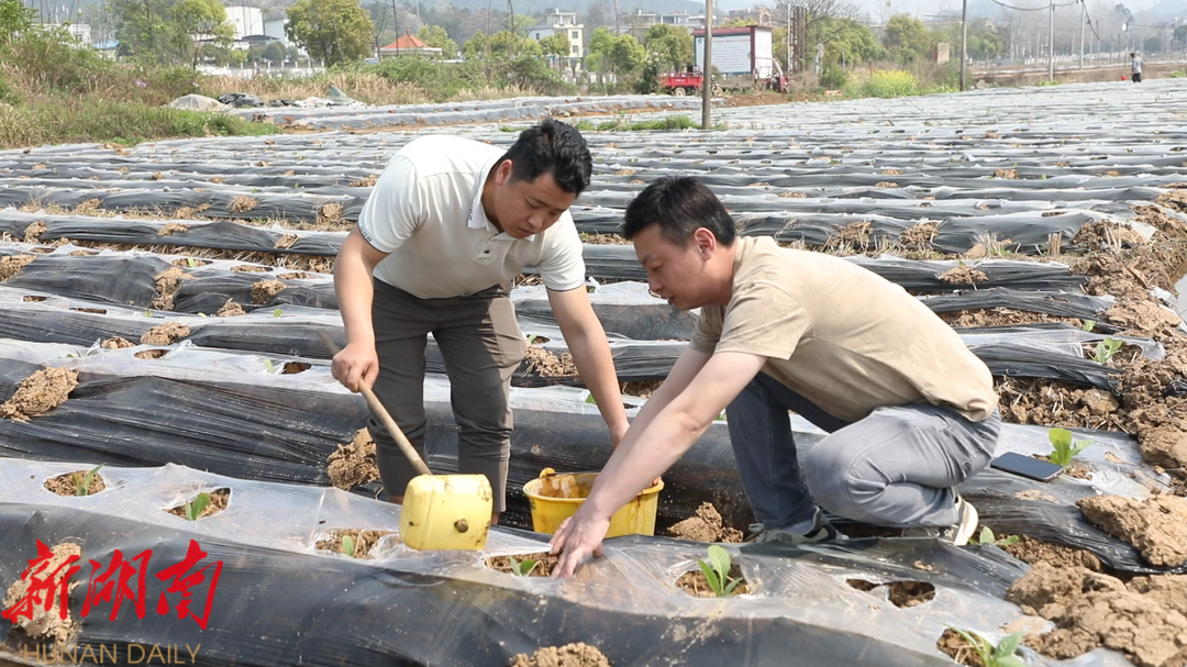 “现在正是破膜、掏苗、施肥的时候,这个追肥的时候要离这个根系稍微远一点,不能直接淋灌在烟株上面。”宁远县仁和镇的烤烟种植基地,放眼望去,一行行烟垄整齐划一,集中连片的烟叶长势良好。烟草站技术人员唐杰龙正指导烟农进行施肥、病虫害防治等管护措施。