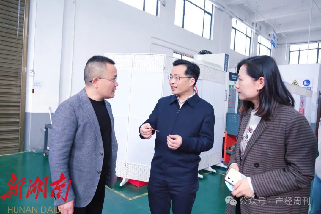 在威尔登智能制造低碳环保产业基地项目现场,现场查看项目进度后,蒋红波叮嘱企业负责人抢抓工作进度,加快推进项目各项建设任务,确保项目尽快投产达效。在睿思电子科技有限公司,蒋红波了解企业生产研发情况后,勉励企业进一步加大研发创新力度,紧盯市场新需求、发展新变化,多谋划、出实招、求突破,不断提高市场占有率。湖南视方达科技有限公司是一家致力于人工智能设备生产研发企业,蒋红波对企业创新成果给予肯定,他指出,当前人工智能设备市场空间广阔,希望企业进一步加大研发创新力度,不断丰富产品品类,精准定位发展方向,抢占更大市场份额,扎根园区谋求更大发展。在湖南创星科技股份有限公司,蒋红波勉励企业进一步加强研发投入,积极应用更多新技术、新产品赋能生产经营。