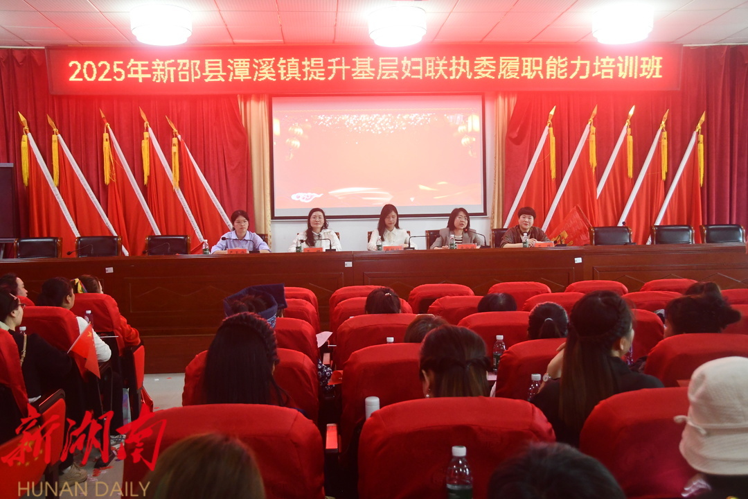 新新邵客户端3月28日讯 (记者 杨能广 肖晔 通讯员 何智) 3月27日,潭溪镇妇联开展2025年基层妇联执委履职能力培训活动,该镇各村(社区)全体妇联执委、镇村女干部参加培训。副县长张明艳出席,县妇联相关领导参加并做业务培训。