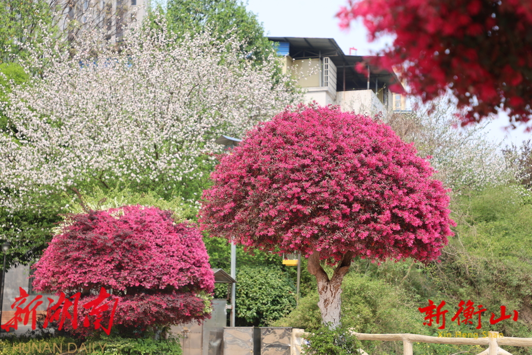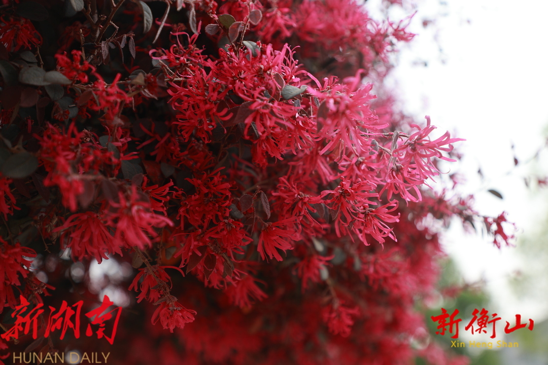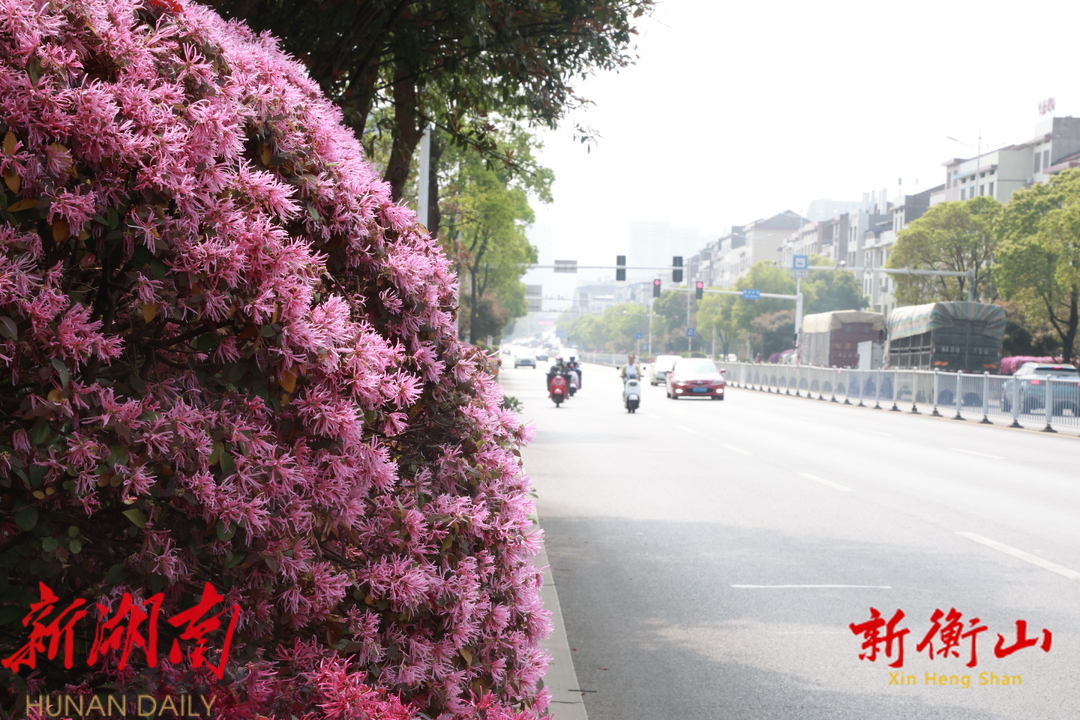 新衡山客户端3月28日讯(记者:何思霞 刘星语)春暖花开,百花齐放。近日,县城道路绿化带上一棵棵、一柱柱红花檵木正以“姹紫嫣红满树盛”的独特魅力,惊艳绽放于城市的各个角落,把大街小巷打扮得满园春色。