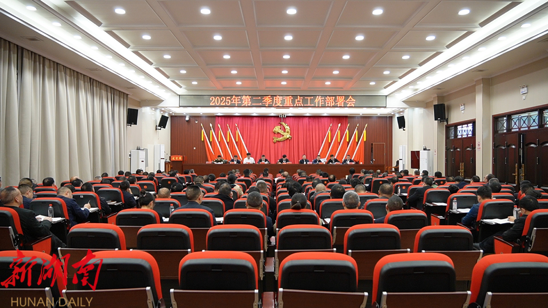 洞口融媒3月28日讯(记者:胡海鹏) 3月28日,县委书记吴韬主持召开2025年第二季度重点工作部署会,欧阳佑春,向兵,罗颢,袁愈绍,刘玮,唐煜,张纲学,夏世界等县领导参加会议。