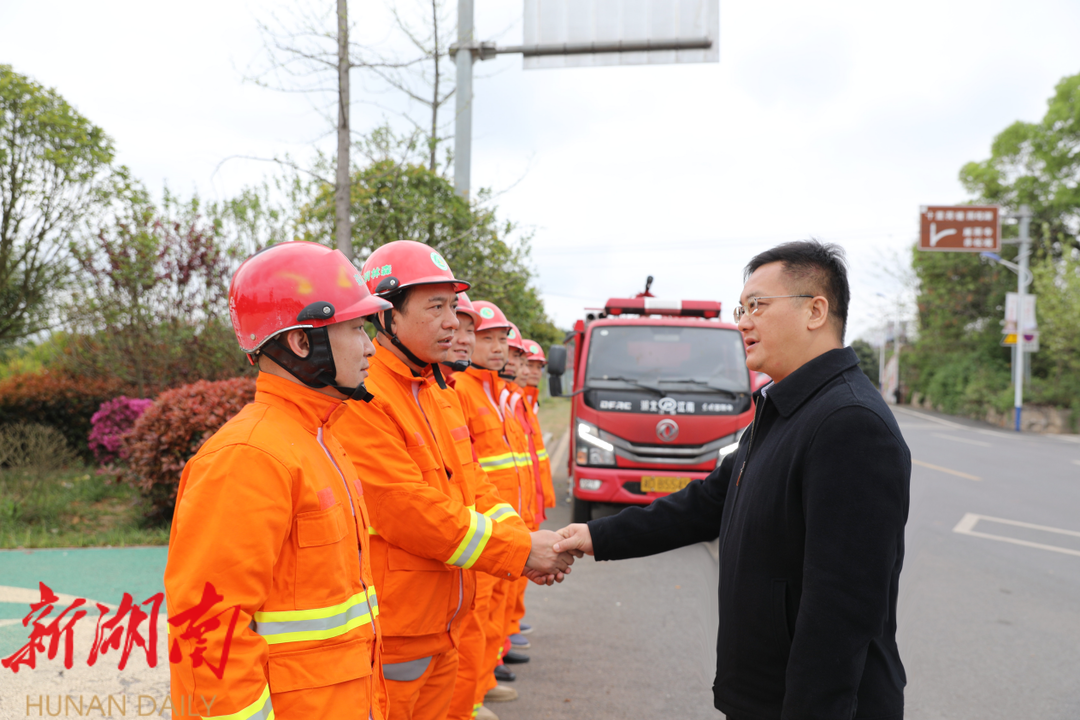 在雨母山景区,李健重点询问了相关负责人有关防火检查站设置、巡逻值守安排、灭火装备配备及宣传引导等情况。他要求,要进一步加强巡查和隐患排查,完善应急处置预案,推进部门协调联动,以工作合力扎实推进各项防范措施落实。李健还与雨母山应急救援队队员亲切交谈,对他们的辛勤付出表示了感谢,并叮嘱大家要时刻保持高度警惕,科学合理安排巡逻力量,确保山有人巡、路有人守、点有人看,全力守护森林安全。