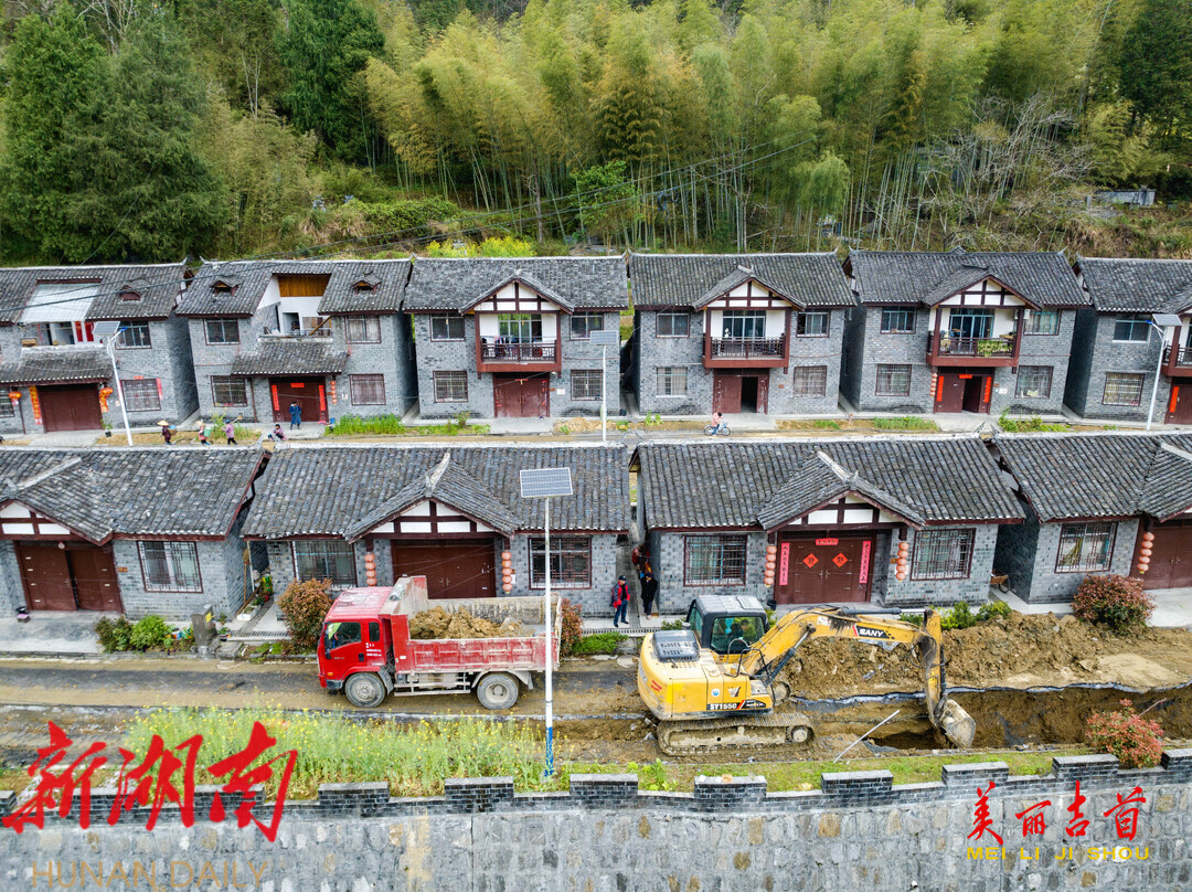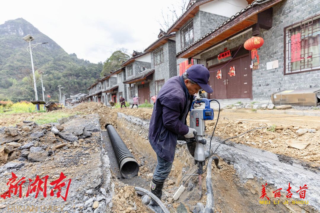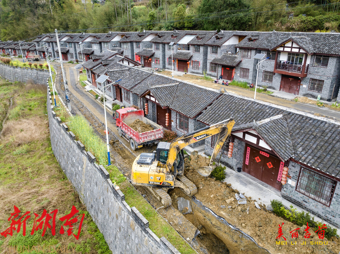 吉首市融媒体中心3月29日讯(全媒体记者 彭璟)2025年3月29日,湖南吉首市矮寨镇坪朗村易地搬迁安置点,工人在加紧开展污水管网施工。该工程项目通过新建标准化排污系统,完善基础设施,优化人居环境,切实提升搬迁群众居住品质,不断增强群众获得感和幸福感。