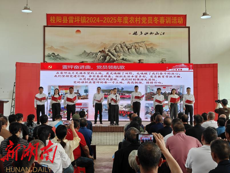 新桂阳3月31日讯(通讯员 欧阳峰 刘勇军)春潮涌动处,扬帆奋进时。3月27日,雷坪镇2024-2025年度党员冬春训在庄严氛围中拉开帷幕,全镇300余名党员以饱满的政治热情齐聚一堂。此次培训创新采用"理论武装+典型示范+实践锻炼"三维模式,将学习课堂延伸到乡村振兴主战场,为激活基层党组织“神经末梢”,提升基层治理效能注入澎湃红色动能。