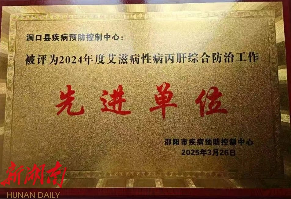 洞口县疾病预防控制中心荣获“2024年度艾滋病性病丙肝防治工作先进单位”称号