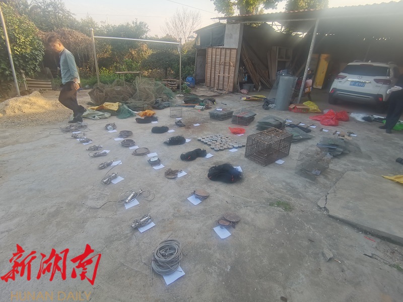 今年来,湘阴县林业局联合该县政法委、网信办、公安局、市场监督管理局、农业农村局、交通运输局等部门开展为期一月的“2025清风行动”,重点打击非法狩猎、交易、运输野生动物等违法犯罪行为。截至3月30日,该县共破获非法狩猎案件12起,打掉非法狩猎团伙4个,依法打击处理违法犯罪人员28人,查获各类野生动物活体及制品598件,其中包括国家二级保护动物豹猫2只;收缴配备热成像、夜视仪、红外瞄准仪的气枪、无人机等高科技作案设备及猎夹、捕鸟网、捕蛇笼、定位报警器、诱鸟器等传统非法猎捕工具203件。